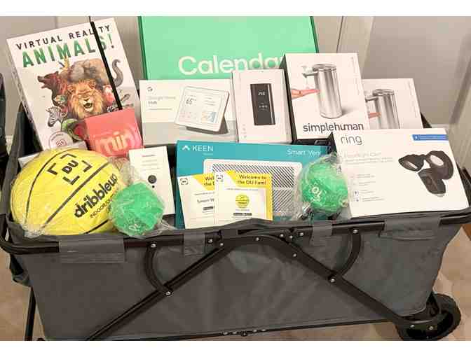 using your sleek Skylight Calendar. Take your workouts to the next level with access to premium interactive training sessions and real-time feedback using your DribbleUp smart basketball and weights. Enjoy hands free control of your home, play music, and stay connected using your Apple HomePod & Google Home. Keep your home secure with real-time video monitoring and motion detection using your SimpliSafe video doorbell & Ring motion activated security camera and floodlight. Optimize airflow using your smart vent. Inflate tires, sports equipment, and more with precision and ease using your smart air compressor. Create the perfect ambiance for any space using your dimmable night lights. Maintain a cleaner, more hygienic home with touch-free handwashing using your SimpleHuman automatic soap dispensers. Let your kids immerse themselves in virtual adventures and explore the animal kingdom using their VR headset. Perfect for hauling sports gear, groceries, or outdoor essentials with effortless transportation, your heavy duty quick-folding wagon cart does it all. When not in use, the wagon cart can be quickly folded and stored into the matching carrying