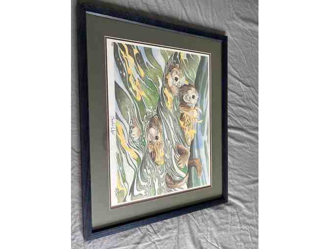 "Surf's Up" signed, framed, matted sea otter print by Zach Babat.