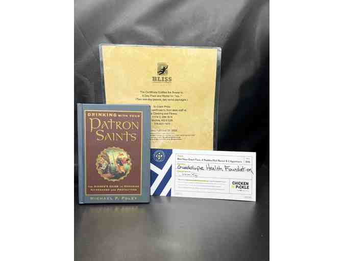 To top it off, embrace your spiritual side with a unique Catholic Arts & Gifts item—Drinking with Your Patron Saint by Michael, a thoughtful and intriguing piece to add to your collection. Whether you're enjoying the thrill of pickleball, the challenge of climbing, or reflecting on your faith, this package offers a perfect blend of activities and relaxation.