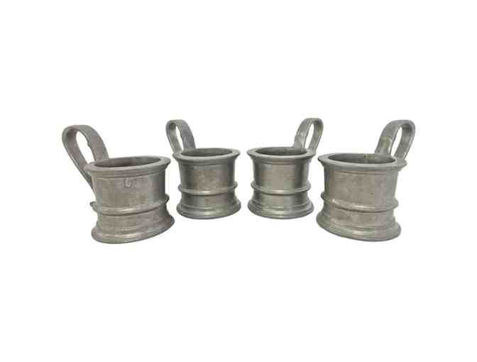 The four vintage pewter holders do not have bottoms and are made to hold glass tumblers. Great as decorative objects on kitchen shelves or dining room table.