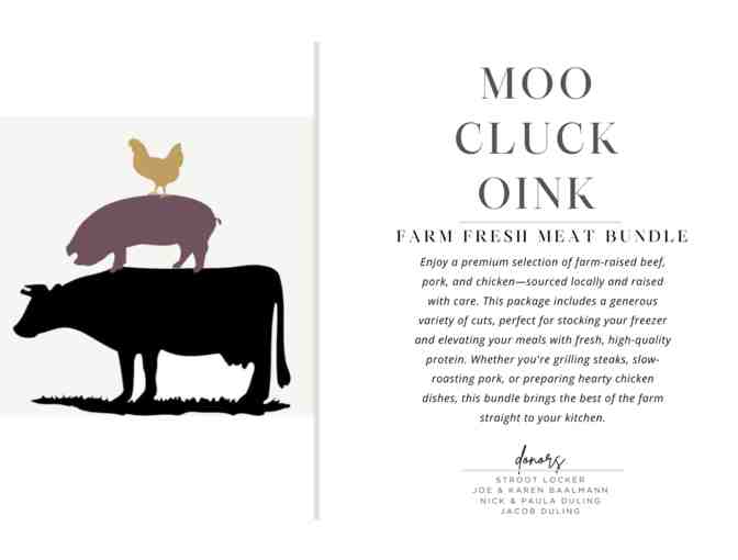 Enjoy a premium selection of 1/4 farm-raised beef,1/2 pig, and 12 chickens - sourced locally and raised with care. This package includes a generous variety of cuts, perfect for stocking your freezer and elevating your meals with fresh, high-quality protein. whether you’re grilling steak, slow-roasting pork, or preparing hearty chicken dishes, this bundle brings the best of the farm straight to your kitchen.