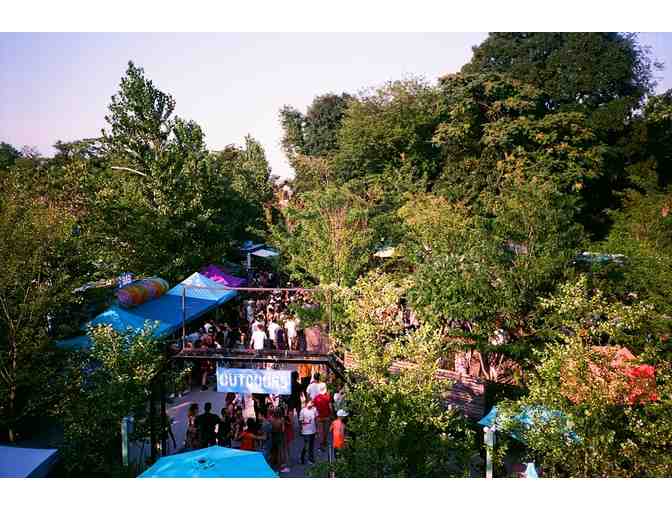 Mister Sunday is a long-running outdoor party hosted in the big back yard of Nowadays, on the border of Brooklyn and Queens. Every Sunday from May 11th through November 2nd, from 3pm to 9pm. DJs Eamon Harkin and Justin Carter (Mulberry, Beech and Honeylocust Grownup) and special guests play music for dancing, surrounded by a canopy of trees and a very nice sound system. There's a food truck, a full bar, a big dance floor and plenty of space to stretch out and take a break. This family pass is good for up to two adults and three kids every week for the entire season.