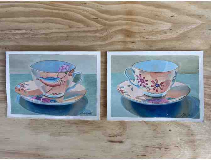Two Gouache paintings of teacups, 4 3/4” x 6 3/4”