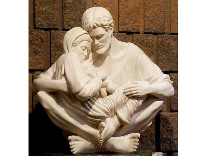 Here is your chance to own a Timothy Schmalz Holy Family "A Quiet Moment" Statue. This Statue depicts Jesus, Mary and Joseph in perfect harmony, love and peace. This large 26" solid resin-stone cast is left in its natural white color. a beautiful piece of art ready for your home.