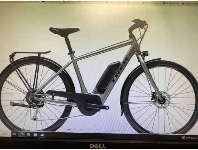 Enjoy the outdoors seeing more by going farther on this electric Trek bike. This one is comfortable, built to last, and equipped with the latest e-bike technology. The bike is a medium sized bike built for someone 5’5 to 5’10. It comes equipped with lights, fenders and a rear rack. The suspension seatpost absorbs bumps in the road and the Purion controller has a Walk Assist feature that helps you push your bike out of steep places. The tech you get is a lightweight Alpha Gold Aluminum frame, Bosch Active Line (250W, 40Nm) motor capable of sustaining speeds up to 20mph, a Bosch Purion controller, and a 400Wh battery. Plus a 9-speed Shimano drivetrain, hydraulic disk brakes, wide 45c puncture-resistant tires, ergonomic grips, and a kickstand. This will make biking even more exciting and enjoyable.