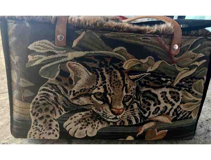 Gorgeous velvet exterior with a stunning embroidered ocelot design on the front. Zebra look inside. Unique, stylish, and the perfect statement piece for any outfit. A must-have for fashion lovers who adore one-of-a-kind accessories!