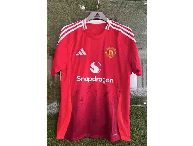 Calling all Manchester United fans! Here's your chance to own a piece of football history with a Manchester United jersey signed by 14 current players. This exclusive, authentic jersey has been personally autographed, making it a true collector’s item for any passionate fan. Signed by: