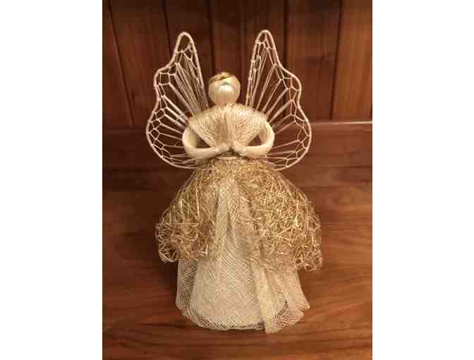 Let this airy angel of light top your holiday Christmas tree. Handcrafted from sinamay in the Philippines. Sinamay is a natural woven fiber made from the stripped fiber of the abaca tree. Abaca is a banana-like tree with a slender trunk and thin leaves. The fine strands of fibers are woven into fabrics with a wooden loom. The resulting woven fabric is called sinamay. Sinamay fibers are also used for making cordage and ropes.