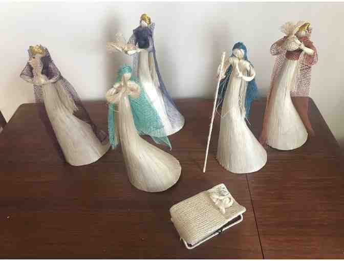 Make the Full of Grace Nativity the centerpiece of your family's holiday traditions, handcrafted from fast-growing sinamay and abaca. This elegant nativity featuring six handcarved figures calls to mind that first Christmas night in natural tones accented by blues, orange, and regal purple. Sinamay is woven from abaca fiber that comes from a non-edible banana tree native to the Phillippines. It is three times stronger than cotton or silk, making it a very durable fiber.