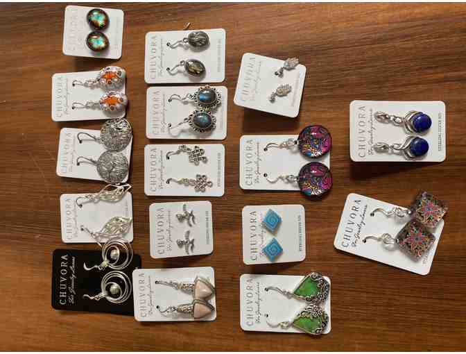 You are bidding to win a large lot of 16 pairs of sterling silver earrings.