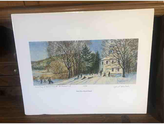 16 inch by 20 inch print of "Snow Day at the Round Church" in Richmond, Vermont.