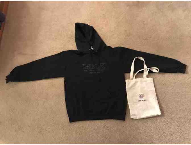Black, medium Sweatshirt and small (13" x 10") thin, cotton tote bag
