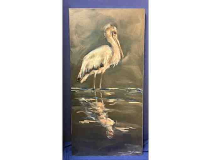Commanding in presence and steeped in mystery, "The Watcher" captures the quiet intensity of one of the Lowcountry’s most striking and stoic creatures—the Wood Stork. This 24x48 canvas makes a bold statement with its dramatic tones and moody atmosphere, highlighting the textured feathers, wise gaze, and almost prehistoric elegance of this majestic bird.