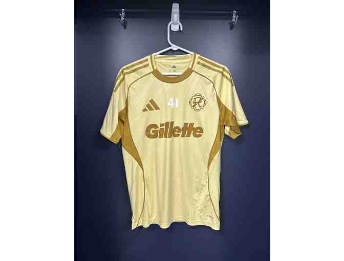 You are bidding on a "One Planet, One Chance" pre-match top worn by Revolution forward Luca Langoni during the Revs Greener Goals match on Saturday, April 19, 2025 against New York City FC.
