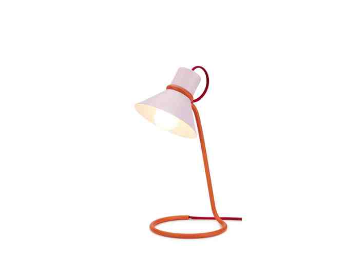 Want a pop of color while you read or work? Bid on the Loop de Loop Table Lamp in pink and orange.