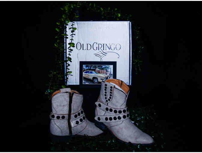 Featuring the stunning Old Gringo Silverton Short Boots in Desert Bone (Ladies Size 10F), these handcrafted boots are adorned with star-studded straps, offering a dazzling twist on classic cowgirl flair. Whether you're strolling through the Stockyards or hitting the town, these boots promise to deliver show-stopping style with every step.