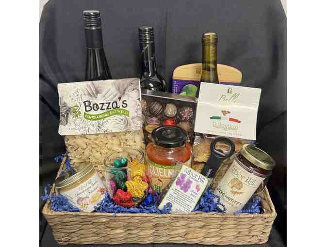 Celebrate the rich tastes of Rochester, NY with this beautifully curated gift basket, brimming with locally sourced delights. Inside, you'll find handcrafted pasta and sauces, a selection of fine wines from the Finger Lakes, wine glasses and delicious chocolates. This basket delivers a true taste of Rochester's finest.