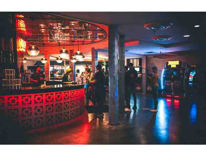 A certificate for four free admissions (good for unlimited gameplay per person) in to the Cidercade, an arcade with locations in Dallas, Austin, Houston, Fort Worth, and Arlington, Texas. A $40 gift certificate to any location of Bishop Cider, CidercadeBishop, or Wild Acre is also included.