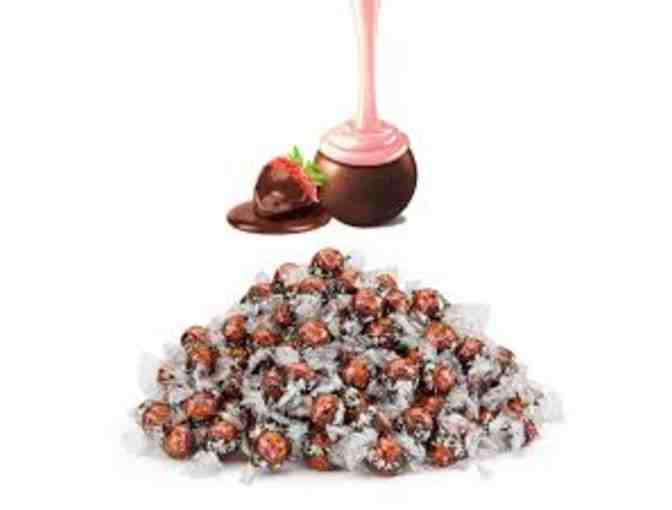 A case of Lindt Dark Chocolate Strawberry Truffles which includes 800 pieces. Expiration date 8/31/2025