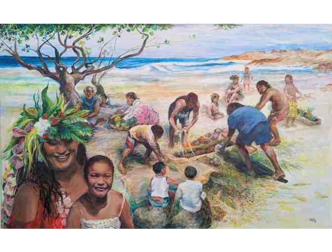 In a familiar scene, an ohana gathers at the beach where groups work to create an imu, prepare food and play.