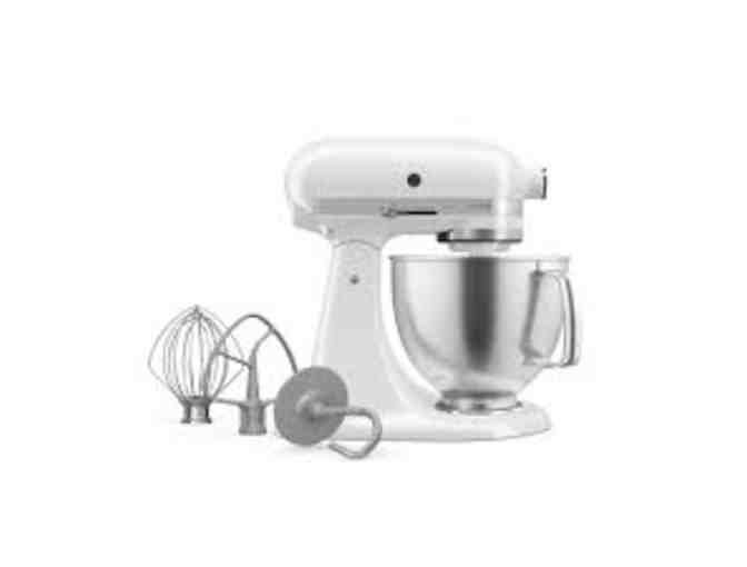 This package features the iconic KitchenAid Stand Mixer in classic white a must-have for bakers and home chefs alike. Whether you're kneading dough, whipping cream, or mixing up your favorite cookie batter, this powerful and versatile mixer makes every kitchen task easier (and more fun!).