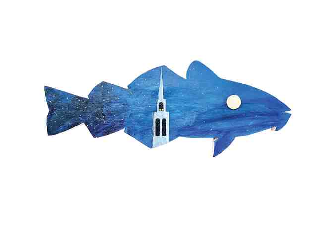 Gregg Hanscom, an artist, writer mental fitness coach, lives in Marblehead Orrington, ME, with his life partner Tonya Taskey Nye. He returns to MFoA with his poetry and cod art, happy that his 2024 and 2025 cods-his only artwork ever sold-benefit the Festival and this fishy celebration of creativity!