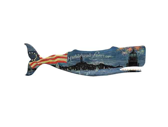 Inspired by New England's whaling past, this piece honors scrimshaw with sculpted clay whale teeth. It depicts Marblehead Harbor at night during the Harbor Illumination and fireworks, capturing the town's spirit in paint and honoring the town's maritime soul.