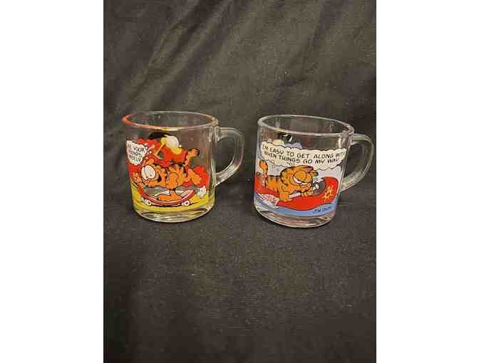 1978 Vintage - New (Never used). TWO McDonald's Original Employee Promo - Glass Mugs for Drinks, Coffee - made by Anchor Hocking Glass Company and given to McDonald's Employees. Adorable clear glass with vinyl designs of Garfield on the front (and Odie on the back), with the sayings "I'm easy to get along with when things go my way" and "Use your friends wisely"). Has the 1978 Copyright and McDonalds Logo on the back. Used as part of a Promotional Campaign by McDonalds in 1978, very collectible. The mugs are 3.5" tall and 3" in diameter. Available for shipping nationwide (with insurance) or Winning Bidder can pick up for FREE in Enfield, Connecticut.