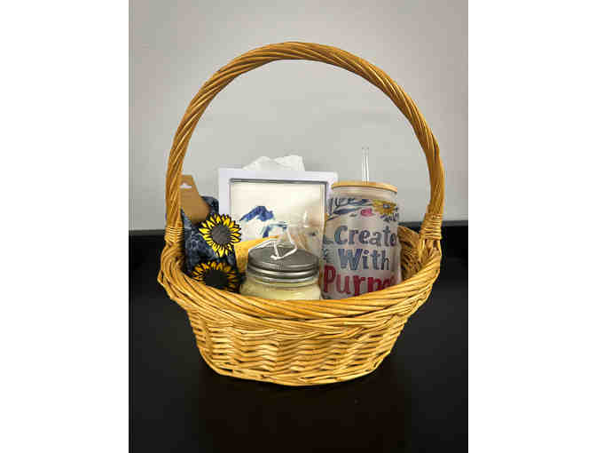 - A glass cup with straw, complete with floral design and the message, "Create with Purpose."