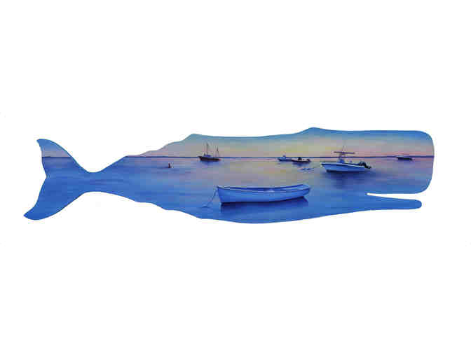 “Virginia was lucky enough to spend summers on the Cape and has done her artwork here since childhood. After attending Rhode Island School of Design she has pursued her design career in the architectural and construction fields for the past 25 years. Virginia’s family ties and fond memories of Chatham have been her inspiration for her paintings and for this year’s whale submission.”