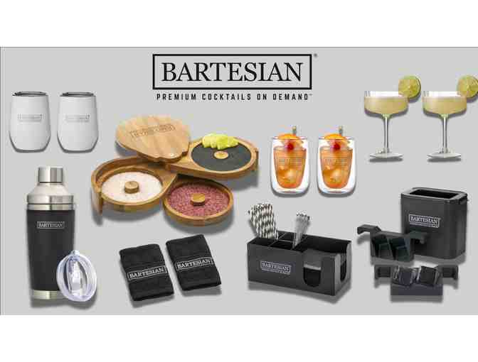 This set includes everything you need for bartending! Couple glassware, lowball double walled glassware, 2 tumblers, 1 cocktail shaker, a bar caddy, a bar towel set, a wooden rimmer tray, and a cube ice mold. Impress your guests with all the tools you need to make them great cocktails!