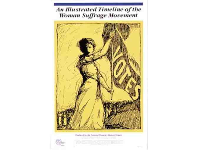This 8 Poster Set Tells The Dramatic Story of the Women's Suffrage Campaign. Clearly depicted panels feature rare historic photos of people and events. These easy to grasp visuals make this timeline invaluable for learning about the 72 year campaign to win the vote. For students and adults.