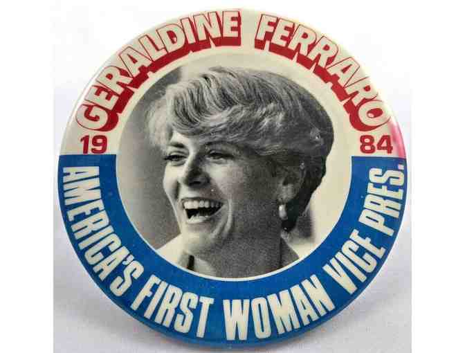 United States House of Representatives. In 1984, and she became the first female vice-presidential candidate representing a major American political party. This button was distributed in 1984 as she ran on a ticket with Walter Mondale