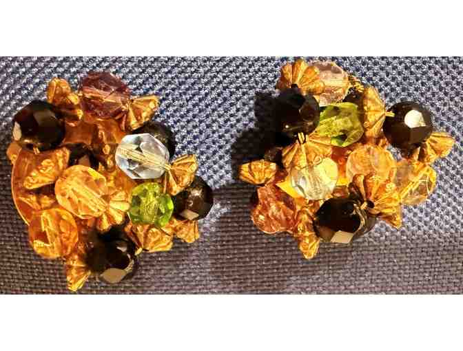 Multicolored Bead Clip-on Earrings 1" (black, blue, green, pink) Vintage