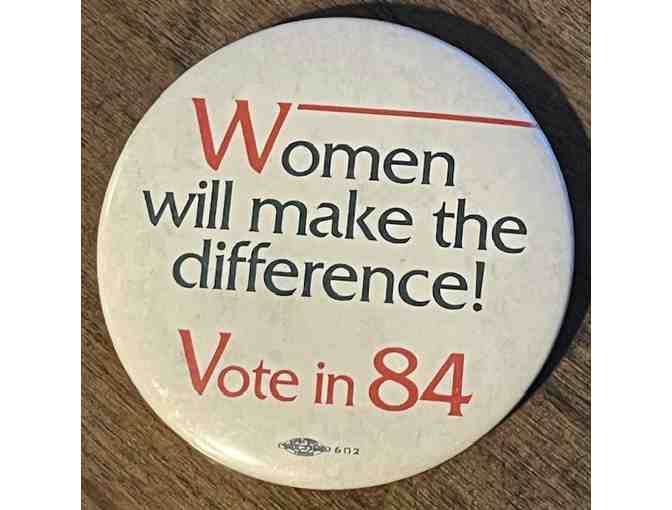 This button in recognition of Geraldine Ferraro being the first women to be nominated for Vice-President by a major party.