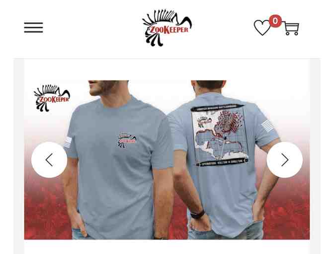 Brand New, T-Shirt - Donated by "Zookeeper Company" (and retails for $30 + shipping). T-Shirt shows a Map with "Operation Kill'Em and Grill 'Em" Theme (and a Lionfish Picture). This T-Shirt is BLUE - in Adult Size MEDIUM. Item can be shipped nationwide (with insurance) to Winning Bidder - or picked up for FREE in Enfield, CT after the Auction. (Note: There is another matching Lionfish T-Shirt in our Auction; the other shirt is "GRAY, Size Adult LARGE" - with the same "Lionfish Map Design").