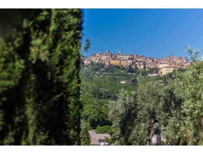 The Villa is just outside the ancient walls of the town, with the backyard patio looking across a vineyard to Montepulciano as it rises on the mountaintop. There is a large front lawn suitable for gaming, sitting, meditating, and of course, drinking wine amongst the olive trees that bedeck the property. Enjoy a full kitchen, al fresco dining area, laundry, satellite TV, and WiFi.