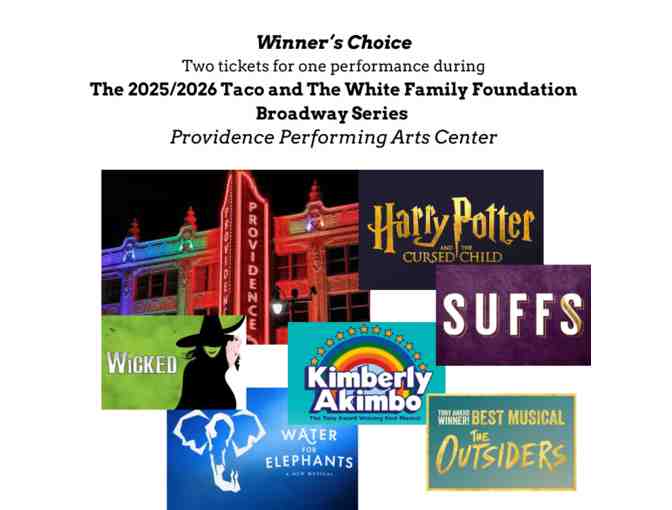 Two tickets for one performance during The 2025/2026 Taco and The White Family Foundation Broadway Series- Winner's Choice!