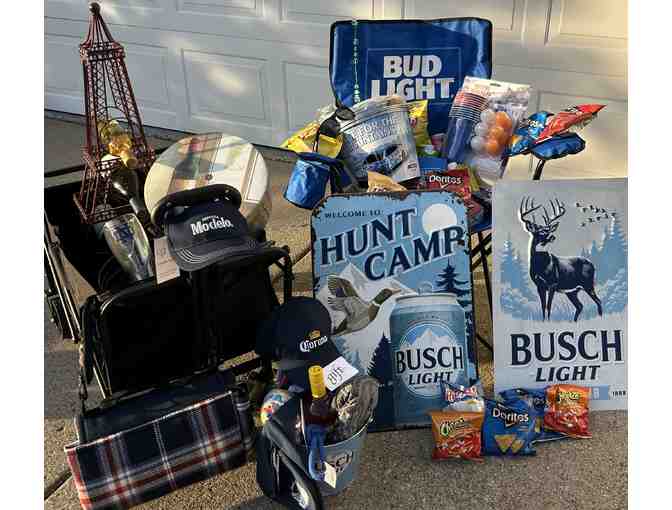 Tailgate with the BEST of everything includes beer and fine wines. Bud Lite iconic tailgate chair with foldable black wagon filled with: