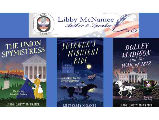 Libby Carty McNamee is a speaker, lawyer, and award-winning author of three upper middle grade novels in the “Remember the Ladies” Series: Susanna’s Midnight Ride: The Girl Who Won the Revolutionary War, Dolley Madison and the War of 1812: America’s First Lady, and The Union Spymistress: The Story of Elizabeth Van Lew, as well as their Study Guides. She also co-directed “Epic Patriot Camp,” mentoring young writers to write the anthologies, The Epic Story of 1776 and The Epic Story of America 1777-79. Based on her research, Virginia now celebrates “Susanna Bolling Day” on December 5, and a historical marker was recently installed in her honor. A new musical called “Racing the Night” tells Susanna’s story on the Virginia Beach oceanfront. Libby is currently at work on her next novel, “Founding Wife: The Story of Abigail Adams.”