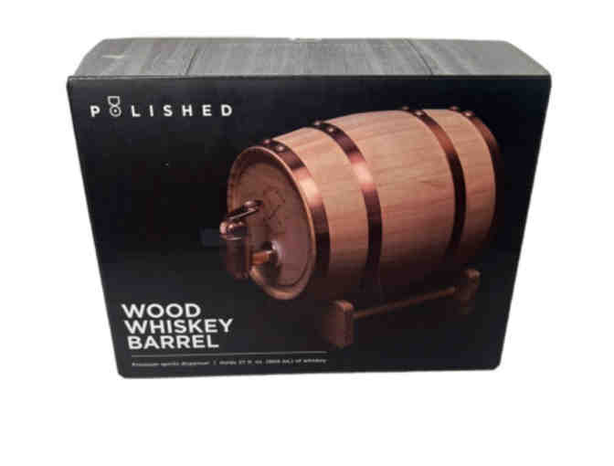 The Polished Wood Whiskey Oak Barrel 27 Ounce Premium Spirits Dispenser by Polished Design is a traditional-style liquor dispenser made of oak wood, in the shape of a barrel/keg. This premium spirits dispenser includes a barrel, tap, funnel and cradle, making it a stylish and functional addition to any home bar or kitchen. The rich brown color and polished wood finish add a touch of sophistication to the set, making it a standout piece for serving your favorite spirits.