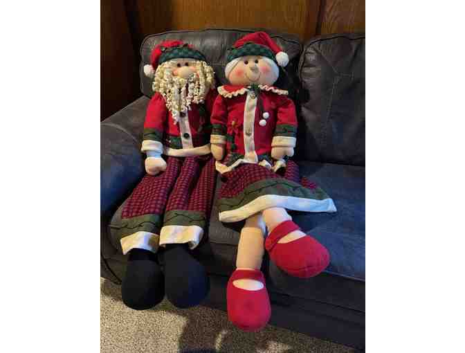 These absolutely adorable Mr. and Mrs. Claus are each approximately 40 inches tall. The Legs can be positioned. From his curly beard to the beautifully embroidered details on their clothing, this pair will put the holiday spirit in anyone!