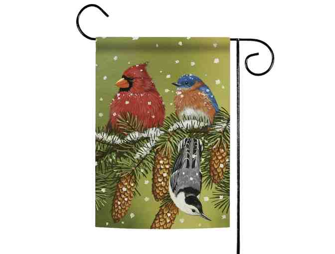 Garden size 12.5 x 18 inch durable Toland flag. Machine washable. Design is double sided with the image printed and visible from both sides. Printed in the USA with colorful, vibrant, bright colors from original artwork. Flag stand not included.