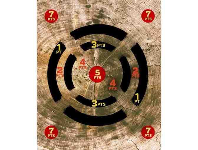 A gift certificate for one hour of throwing for two at Stumpy’s Hatchet House in Tampa, Florida.