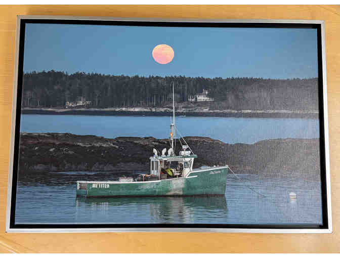 This stunning framed photograph of a Lobster Boat and Moon on canvas will brighten up any space!