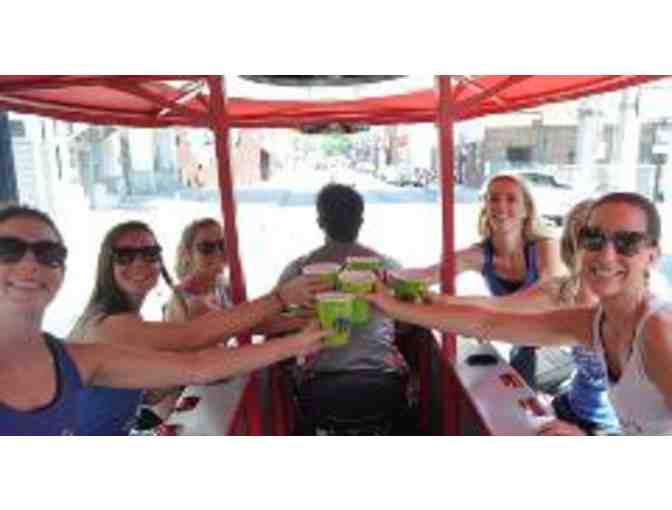With a premium sound system and LED party lights, the 4-wheeled, 14-passenger Scottsdale pedal bar is like a pedal-powered party bus — you can enjoy adult beverages on board.