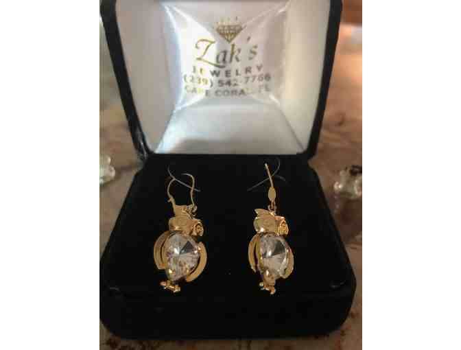 14K Yellow Gold and Cubic Zirconia Owl Earrings